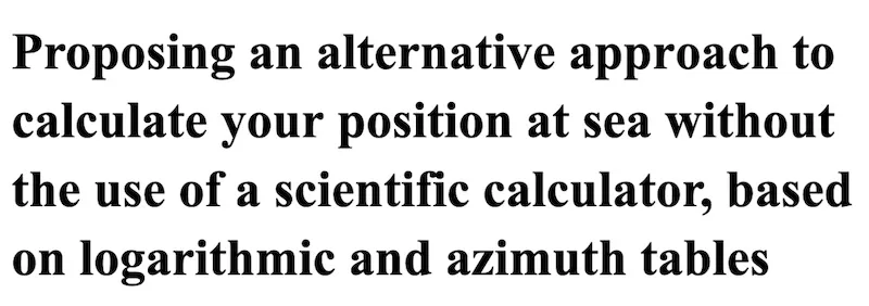 This section is provided as an additional feature of the website. It highlights that celestial navigation can be performed using only logarithmic tables and the nautical almanac, without relying on any electronic device on board.