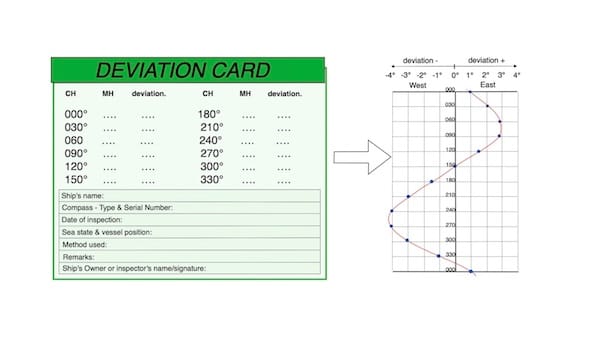 Subsequently, a compass deviation curve can be generated using the completed deviation card.