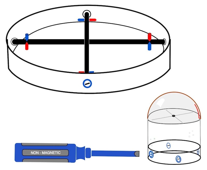 Other manufacturers offer adjustment cartridges in pairs, often much smaller and easier to handle, especially for smaller compass cards.